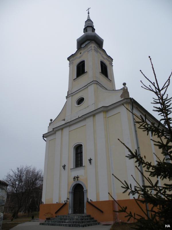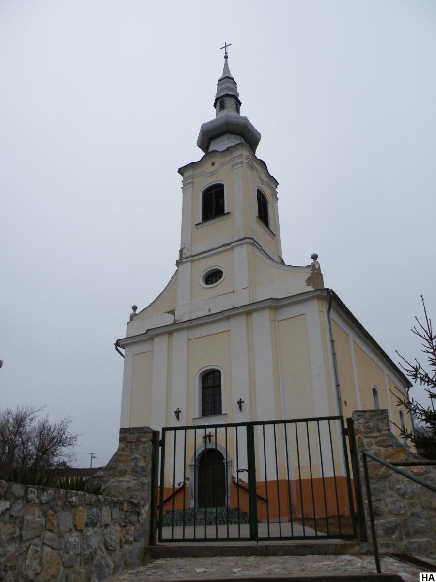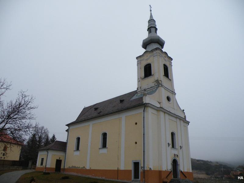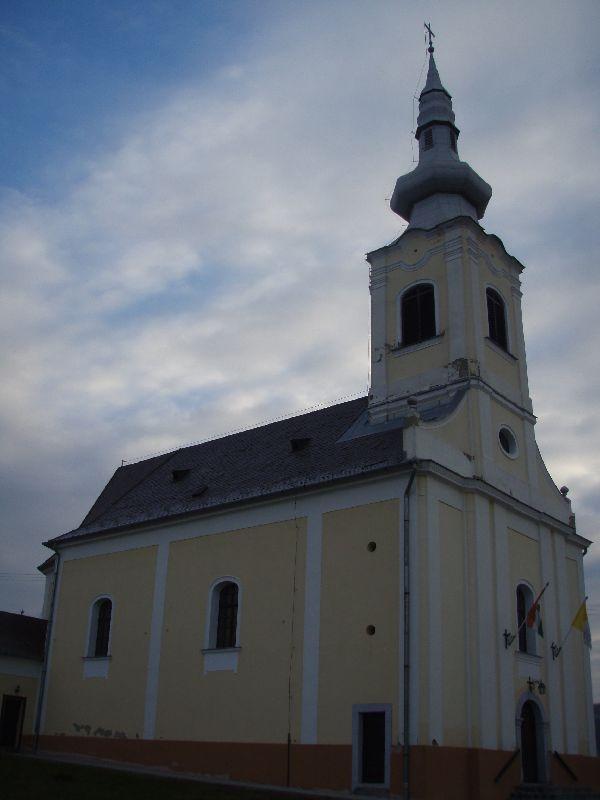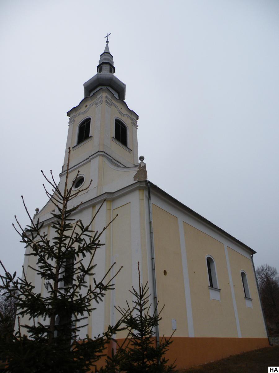 A késő barokk jellegű, dombon álló, egyhajós templomot 1800-ban építették, késő barokk stílusban. Észak-kelet - dél-nyugat tájolású, homlokzati tornya enyhe rizalittal ugrik előre. Főhomlokzatát lizénák, végigfutó koronázó-, feljebb öv-, és órapárkány, elliptikus ablak és ívelt oromfalak díszítik. A keskenyebb szentély a tízszög öt oldalával záródik, észak-nyugati oldalán sekrestyével. Oldalfalait lizénák tagolják. A bejárat félkörös kőkeretét az elmúlt években betonnal javították ki. Belső tere háromszakaszos, melyből kettőt kosáríves hevedereken nyugvó boltozat fed. A harmadik szakaszt a toronycsarnok és az ívesen áttört falú karzat tölti ki. Karzatát és egyben a torony észak-keleti falát erőteljes pillérek tartják. A karzat és az alatta lévő tér dongaboltozatos. A templomfalakat a hevedereknél alkalmazott több pár vonórúd merevíti. Berendezései közül az 1832-bõl való copf szószék jelentősebb.