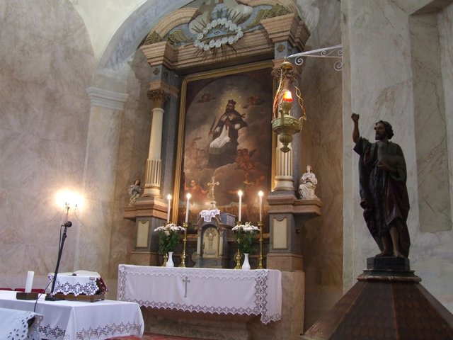 Orgona Rieger (Op. 1373), pneumatikus, egy manuál (5 reg. + oktávkopula), pedál (1 reg. + pedálkopula), 2 komb.