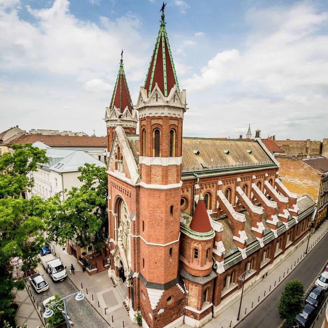 A magyarországi jezsuiták központi temploma azon kevés szakrális épület közé tartozik, amely a hívek szorgalmazására és nagyrészt közadakozásból épült fel. A gyűjtés a jézustársasági atyákat a XIX. század végén a fővárosba hívó Győry Teréz grófnő és Zichy Nándor gróf szorgalmazására indult meg. A templommal egybeépült rendház 1888-1890 között elkészült, de az építkezés befejezése anyagi nehézségek miatt elhúzódott. A templomot végül 1909. április 27-én szentelték fel, és az ugyanabban az évben függetlenné vált magyar jezsuita tartomány központja lett.
