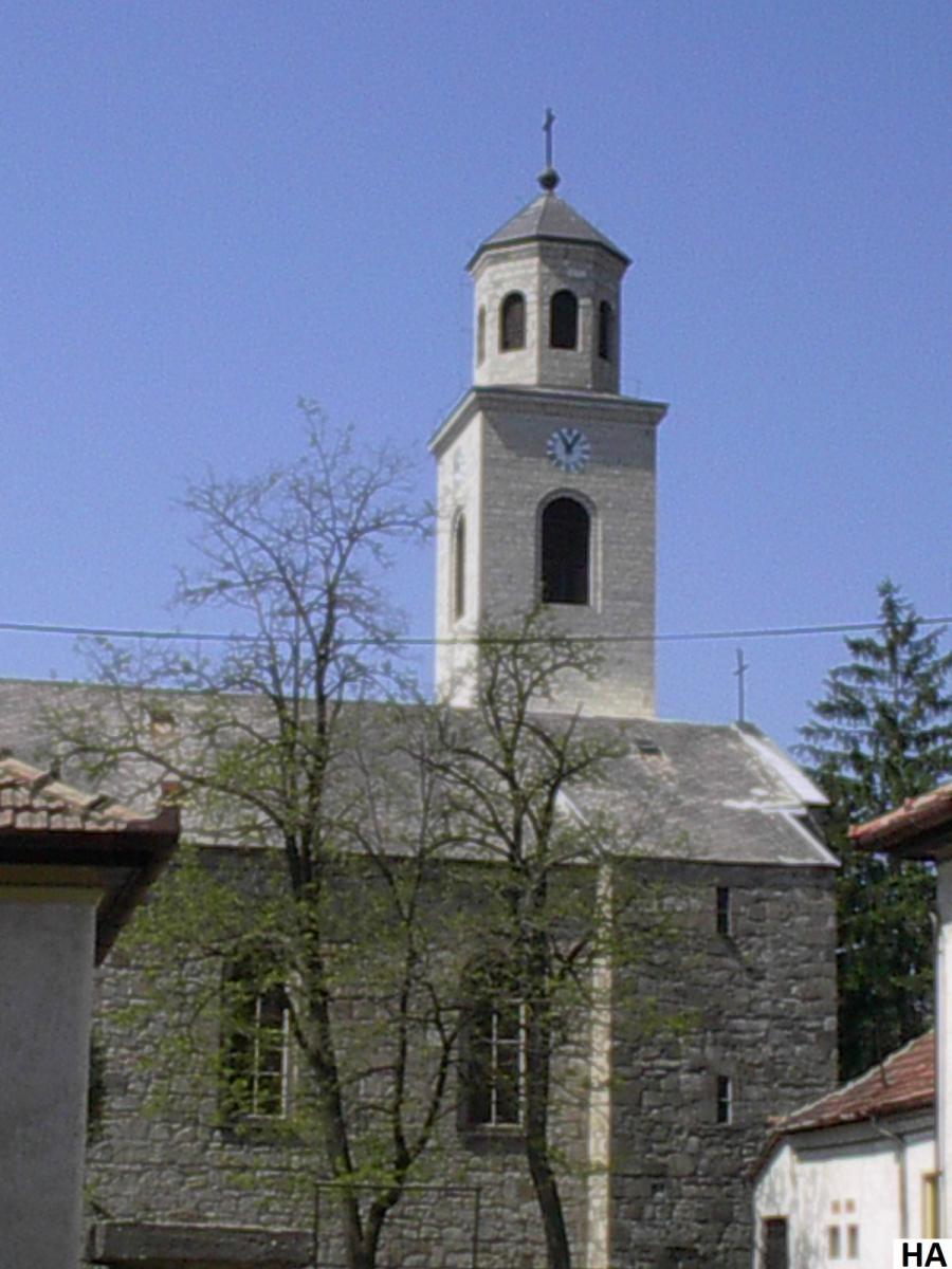 Az első kőből épült templom 1732-ben épült fel, melyet 1770-ben megnagyobbítottak. 1944. november 16-án a németek felrobbantották. Az új templomot 1960-tól építették, Tornya 1997-re készült el. A templom előtt lévő kertben található Nepomuki Szent János szobra.