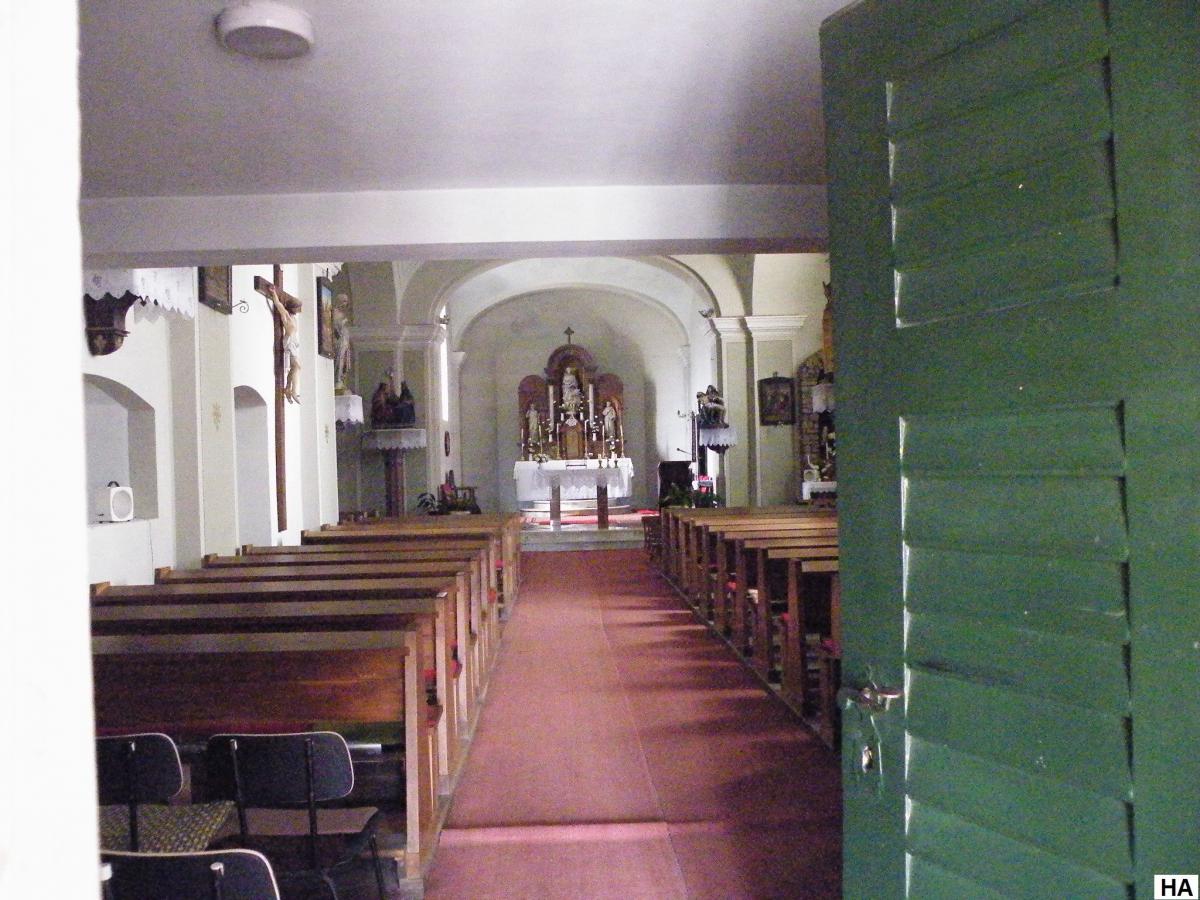 A latinkereszt alakzat jobb és bal oldalában két oldaloltárt alakítottak ki. A Jézus szíve oltáron korábban egy Mária szobor állt, melyet ma a mellette lévő, falban kialakított barlangban láthatunk. Előtte a kis lourdesi Bernadett térdeplő szobra áll. A bal oldali sír oltár mellől indulnak a kálvária képek, melyek a templom falán körbefutva ugyanide érkeznek vissza.