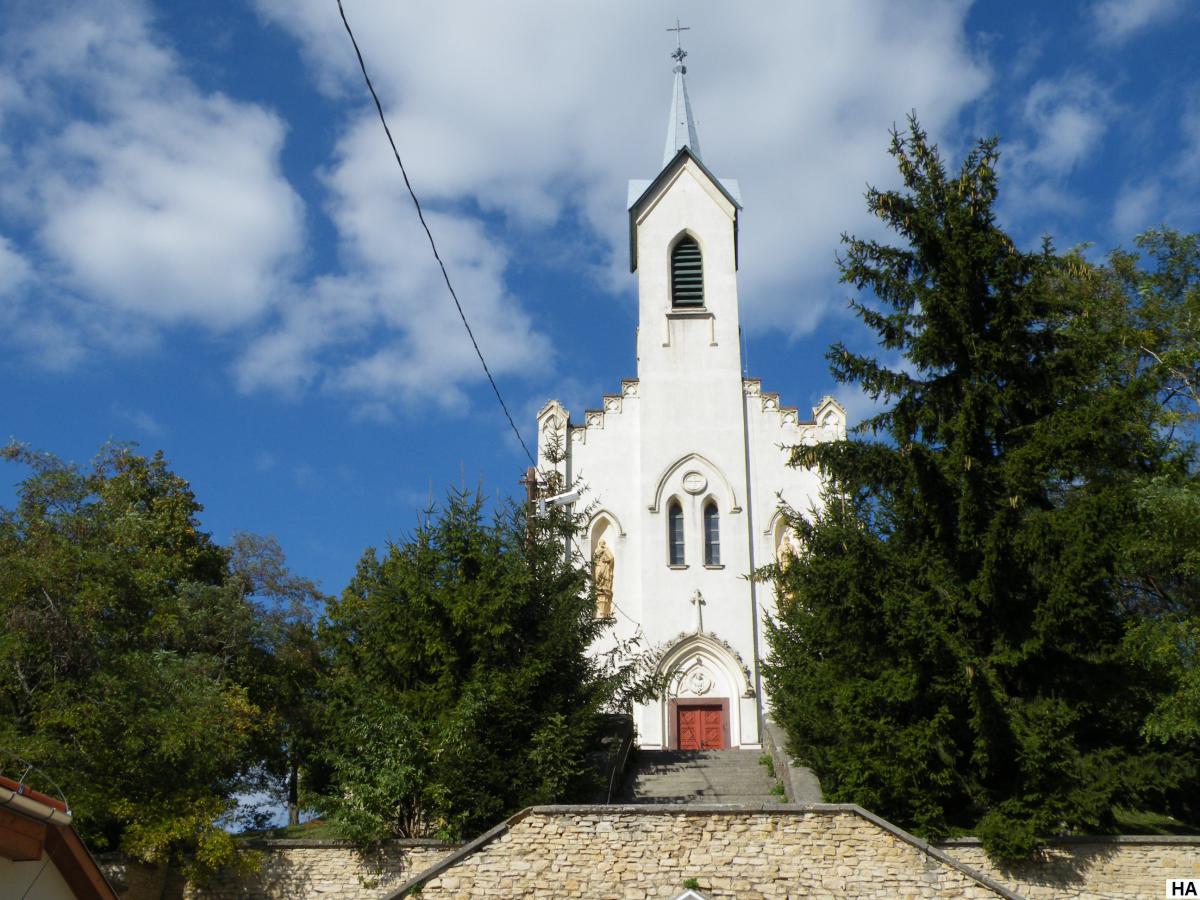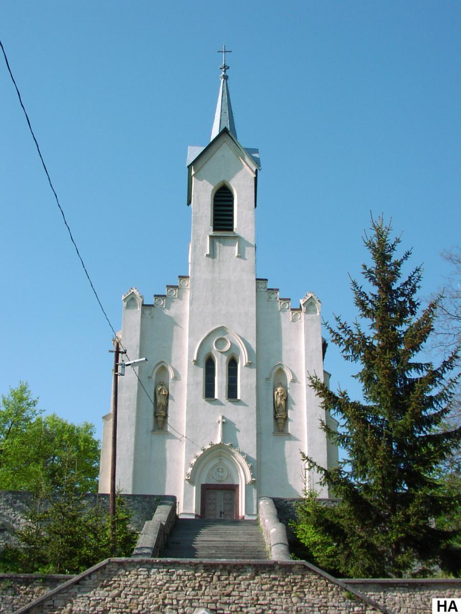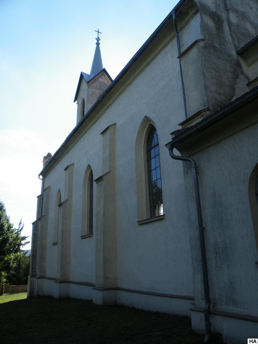 A templom 1868–1869 között épült, neogótikus-romantikus stílusban.