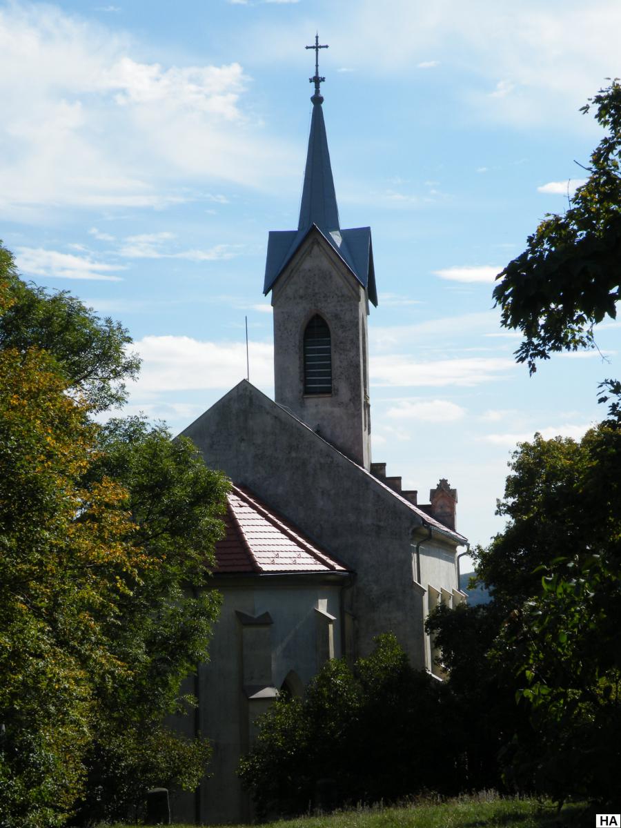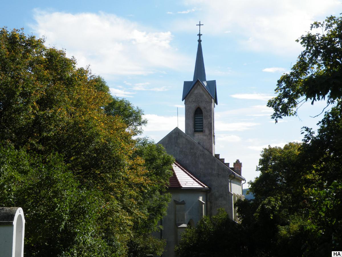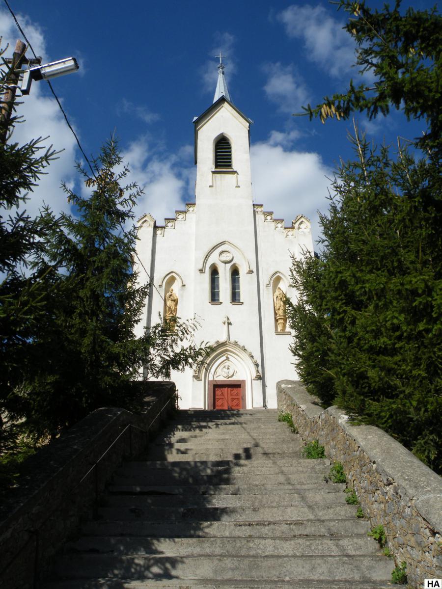 A templom 1868–1869 között épült, neogótikus-romantikus stílusban.