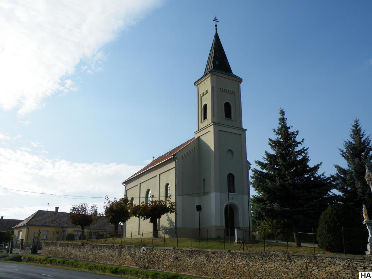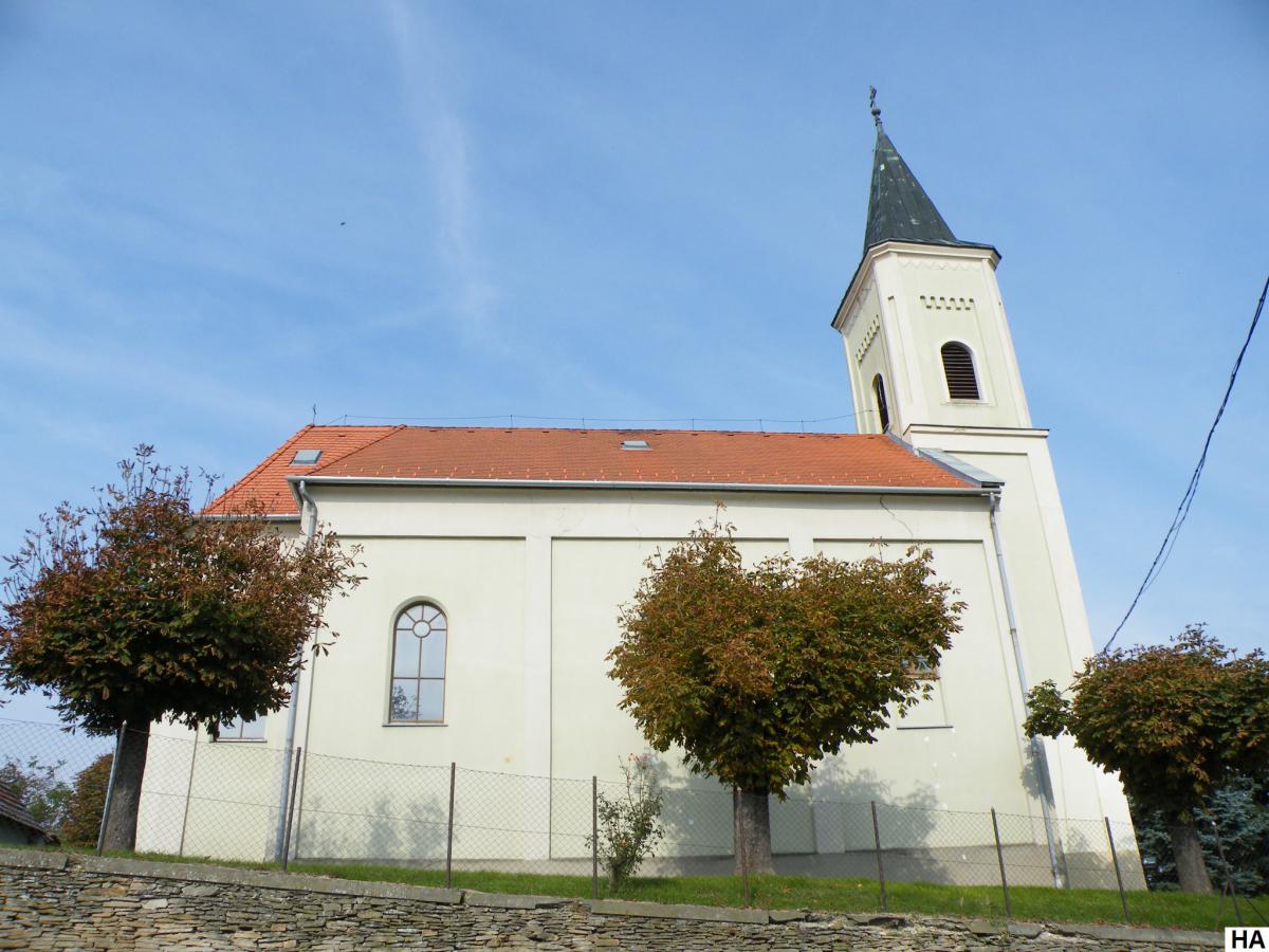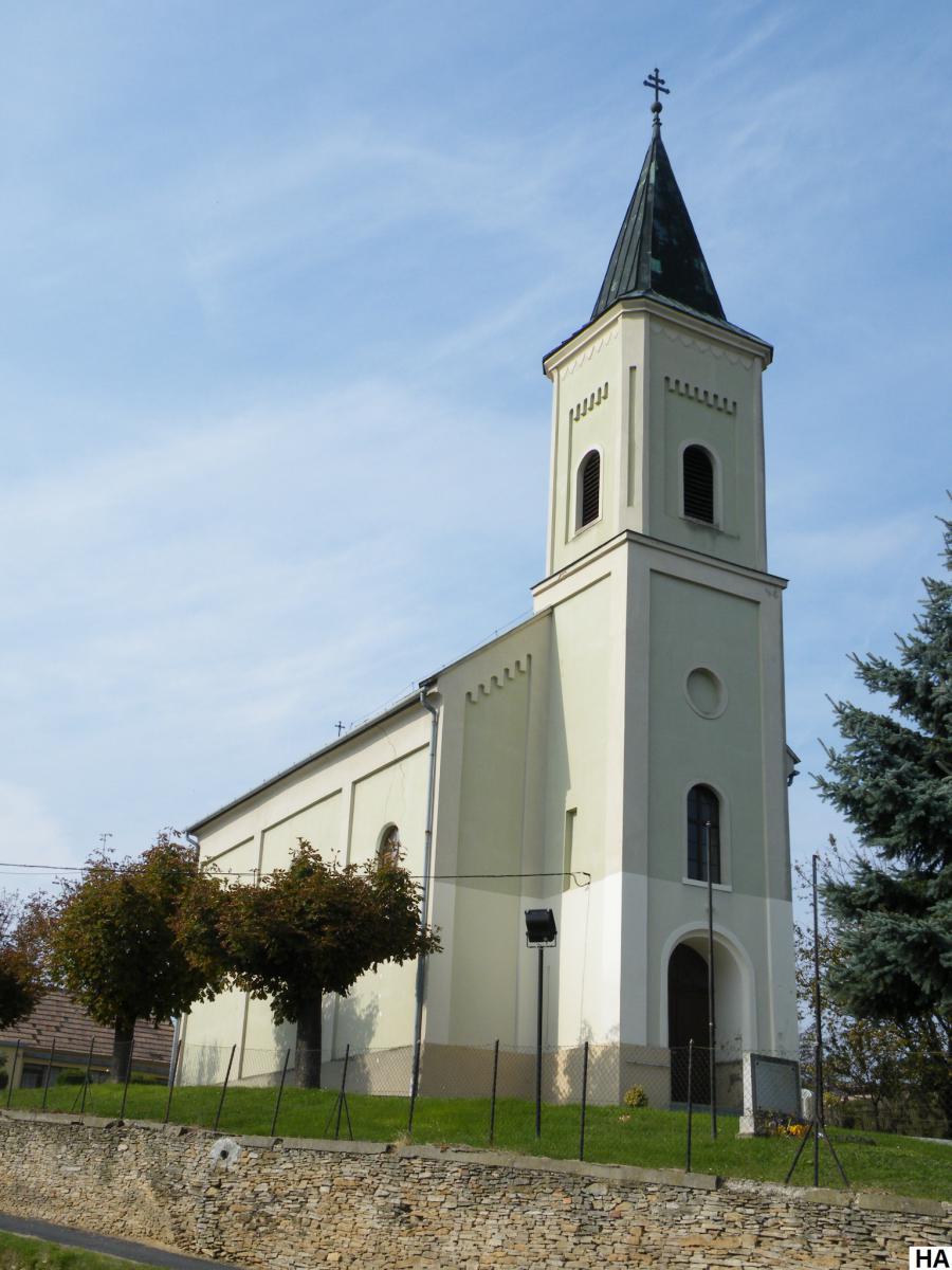 A templom a község legmagasabb pontján épült 1872-ben. Helyén azelőtt is templom, körülötte temető állt. A Szent Kereszt megtalálása tiszteletére állított templomot 1873. május 3-án, a búcsú napján szentelte fel Szabó János esperes, zalaszántói plébános.